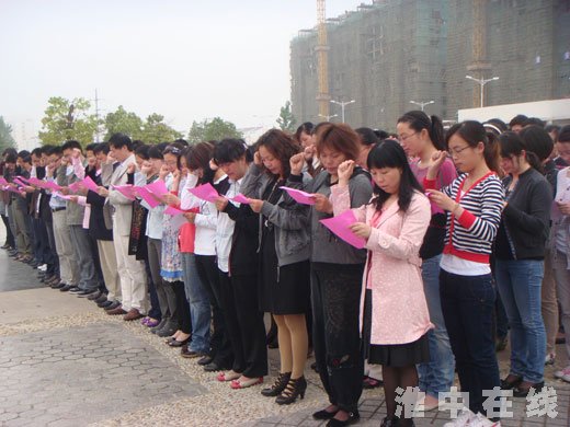文通中学在广场上举行了师德师风承诺宣誓活动。承诺宣誓活动由副校长黄庆政主持,黄庆政在讲话中强调了师德师风建设的重要性,要求全体教职工必须始终牢记人民教师的神圣职责,爱国守法,爱岗敬业,为人师表,关爱学生,乐于奉献,勤于学习,争当让学生、家长满意的人民教师。活动中,文通中学全体教师在党支部副书记马骏领誓下,庄严举起了右手,大声宣誓:“弘扬名庠传统,传承恩来精神;全力创先争优,争做师德标兵;致力终身学习,锐意改革创新……”。