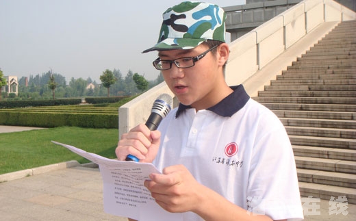 董月同学带领同学们进行了宣誓。“学吾总理,壮怀大江;踏入淮中,奋斗三载;自信自强,拼搏向上……”宣誓声响彻纪念馆。学生代表季冰松同学发了言。他表示要秉承总理风范,学好总理精神,志存高远,奋发进取,以总理为榜样,为中华之崛起而读书。